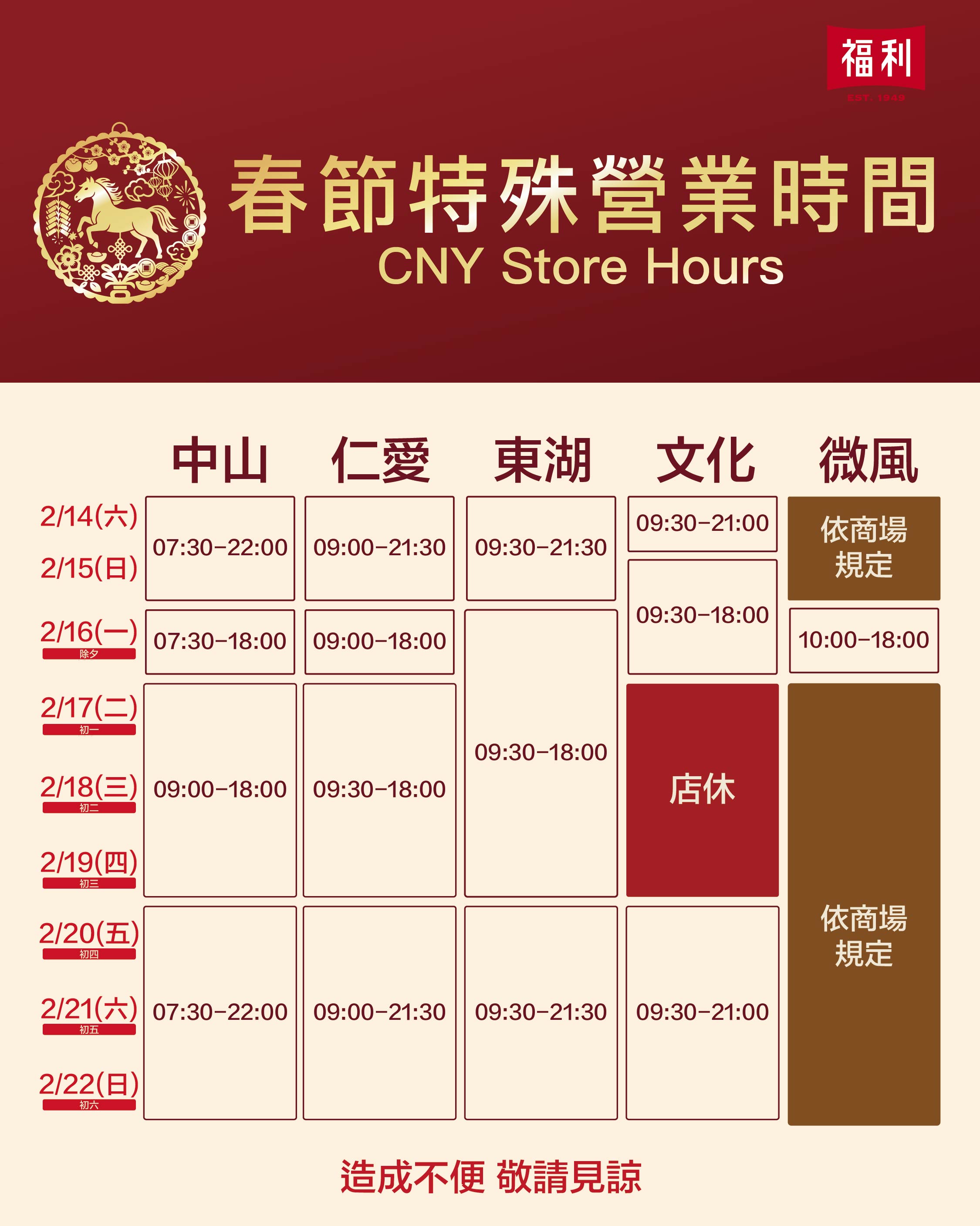 春節營業時間調整,預祝您春節愉快。